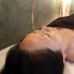 温めたオイルを額に垂らし続けることで、脳の緊張をゆっくりほどいていきます。
